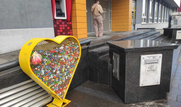 Saznaj višeBrojni mališani, uz asistenciju roditelja godinama skupljaju plastične čepove flaša koje ubacuju u žutu metalnu kutiju u obliku srca ispred