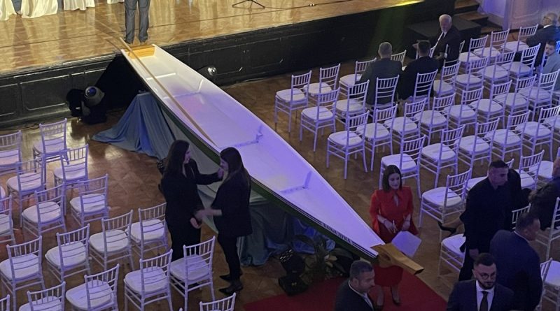 U sali su već raspoređena mjesta za zvanice, a prisutni pristižu uoči najavljenih obraćanja i dodjele priznanja. Kajak, postavljen uz samu binu, simbolično podsjeća na Vrbas i prepoznatljiv identitet grada.