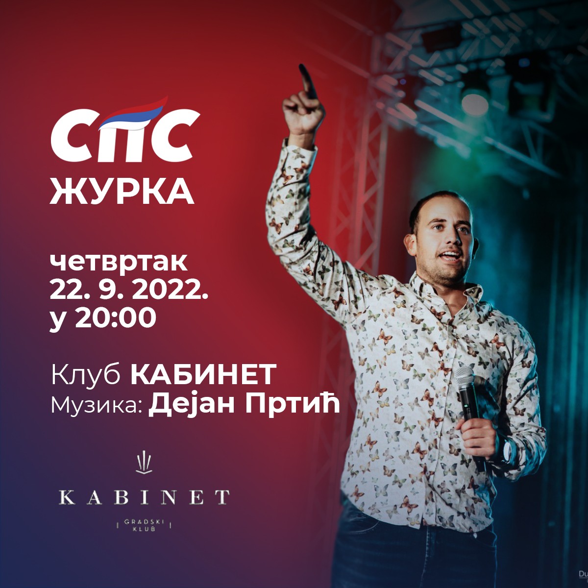 Socijalistička partija Srpske u četvrtak 22. septembra 2022. godine organizuje veliku žurku u klubu Kabinet.