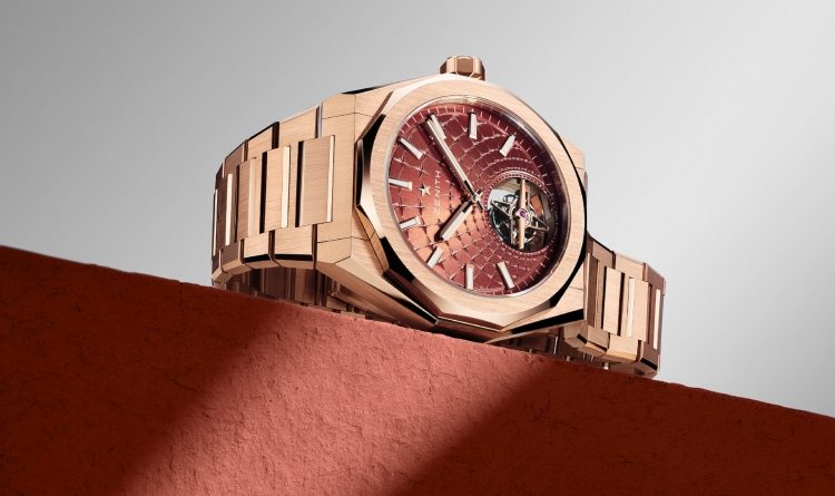 Oštih linija, savršeno integrisanog dizajna i moderne, arhitektonske estetike – ovaj model postao je simbol savremenog luksuza. A sada, švajcarski brend podiže standarde još više – predstavljajući DEFY Skyline Tourbillon u potpunosti izrađen od ružičastog zlata, sa raskošnim brojčanikom u nijansi crvene, inspirisanim fasadom istorijske Zenith radionice u Le Loklu.